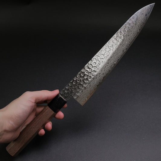 Hitohira HG Tsuchime Damascus Gyuto 240mm Walnut Handle