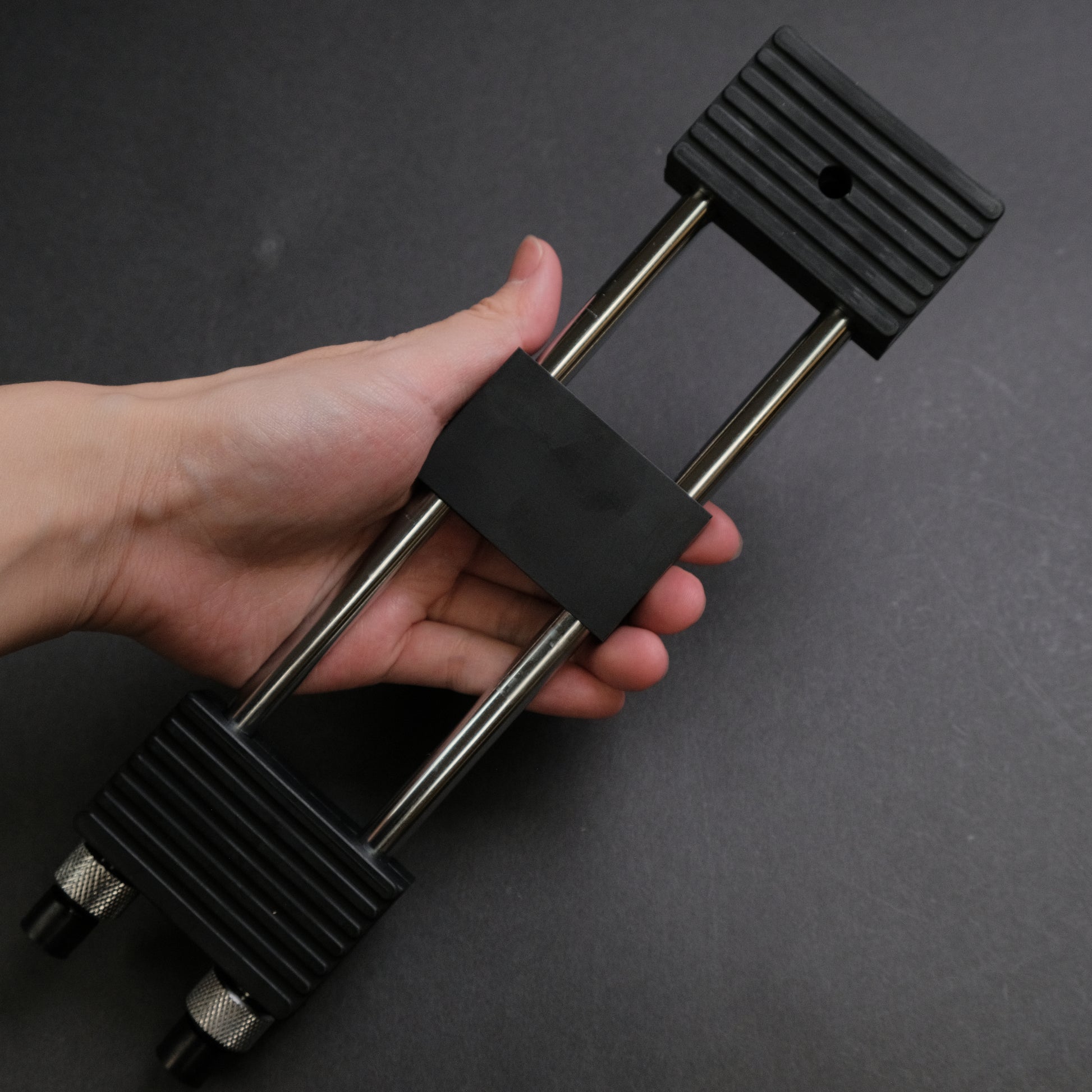 A stone holder is a useful tool as it helps to provide stability and control during the sharpening.